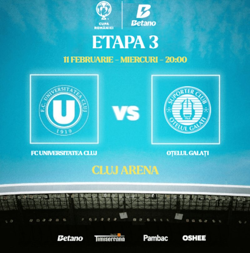 U Cluj termină faza grupelor din Cupa României pe teren propriu.