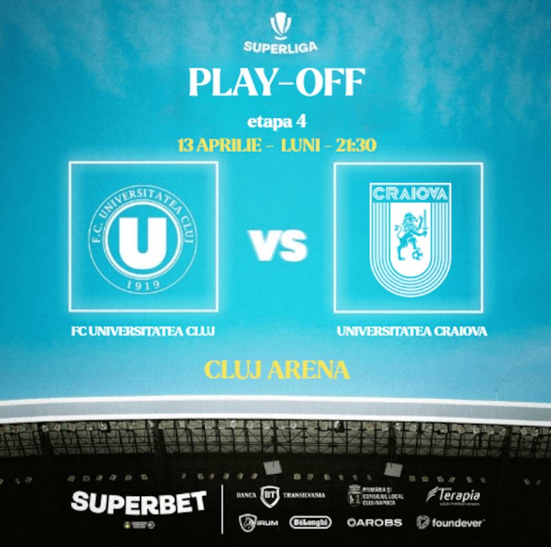 Duelul dintre Universitatea Cluj și Universitatea Craiova va fi unul de intensitate maximă, pentru primul loc din clasament.